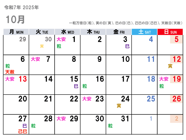 2025年10月の吉日 |