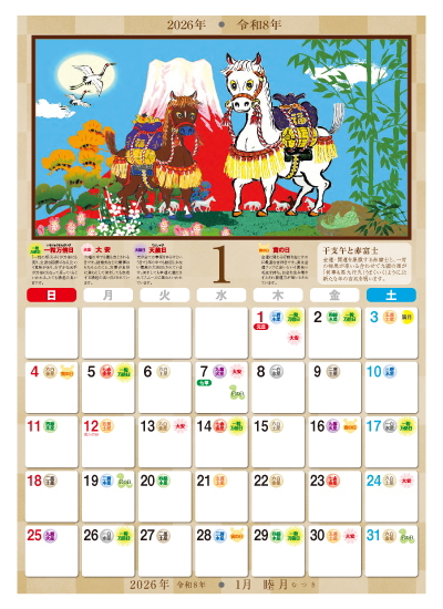 金運万倍カレンダー 2026年版「1月 干支午の赤富士」