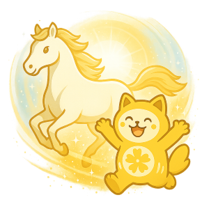 十二支の「午」には拡大と加速のパワーがあります。陽(火)が最高潮に達する象徴で、勝運・人気・商機が一気に上昇しやすい年回りです。古くは神前に馬を奉納し、その後は馬を描いた木札=絵馬へと受け継がれました。馬は「願いを運ぶ存在」とされ、金運面でも“運を運ぶ”力が強まります。機動力と即断即決が活き、リターンの伸びも期待できます。
