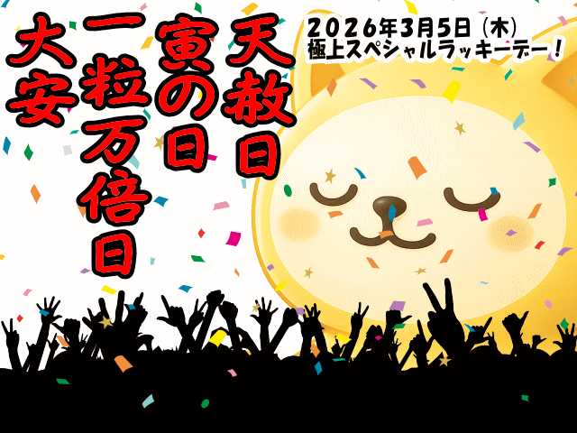 天赦日・一粒万倍日・寅の日・大安。
