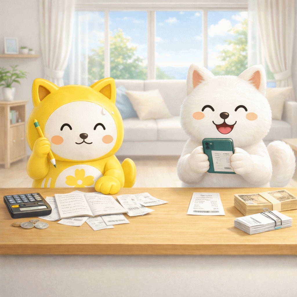- 家計簿は完璧に書こうとせず、レシートをスクラップしたり、アプリに撮ったりして、お金の動きを見える形にする